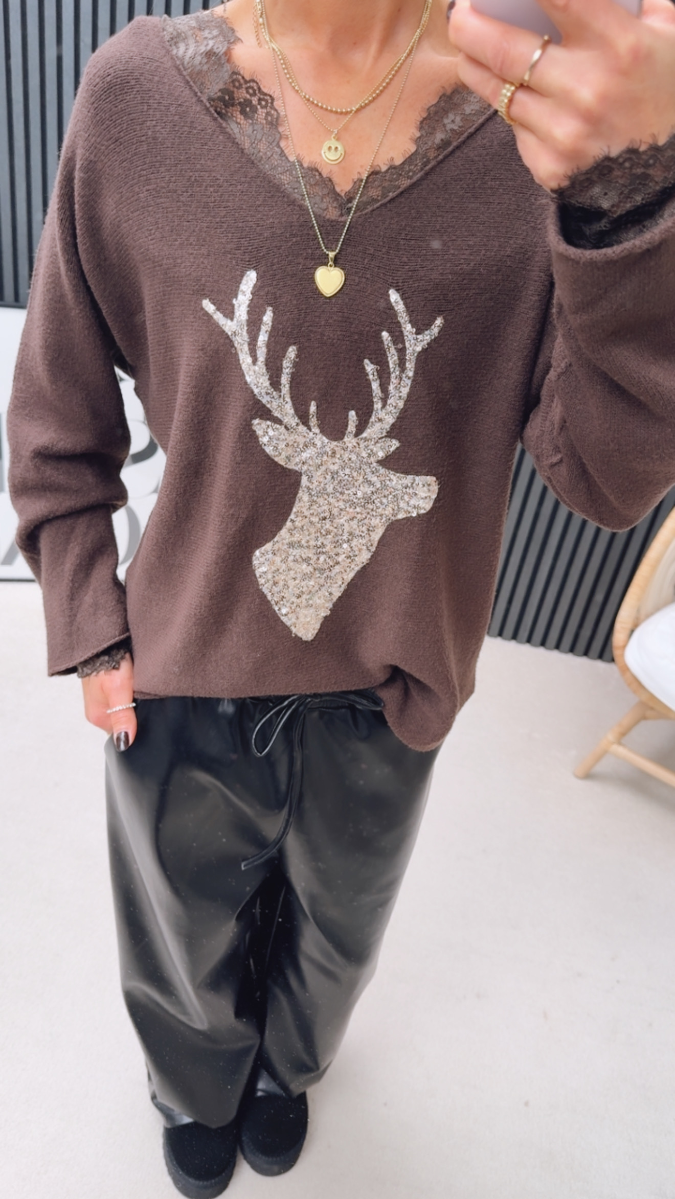 Feinstrick Pulli „Glitzi Hirschleee“