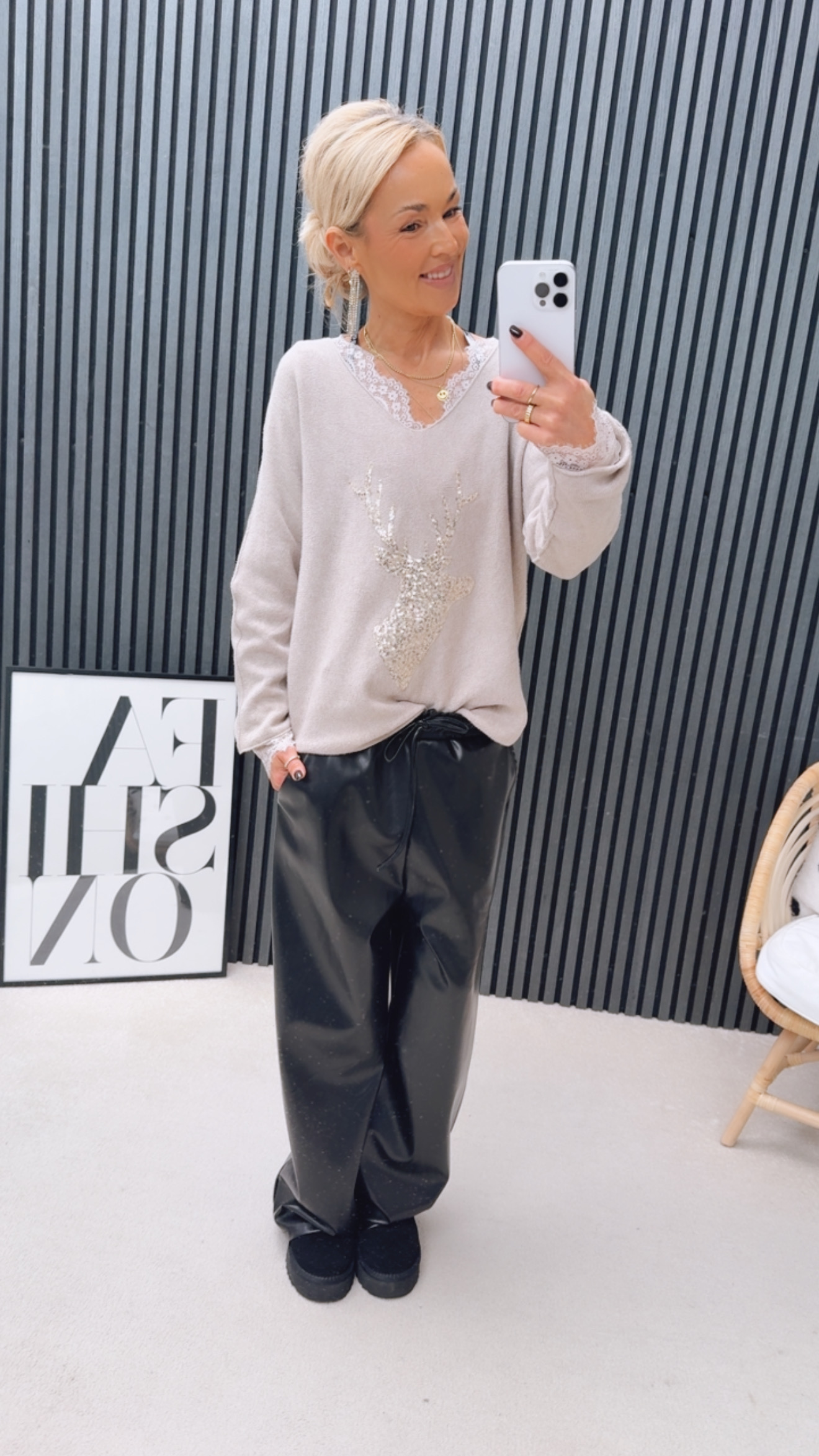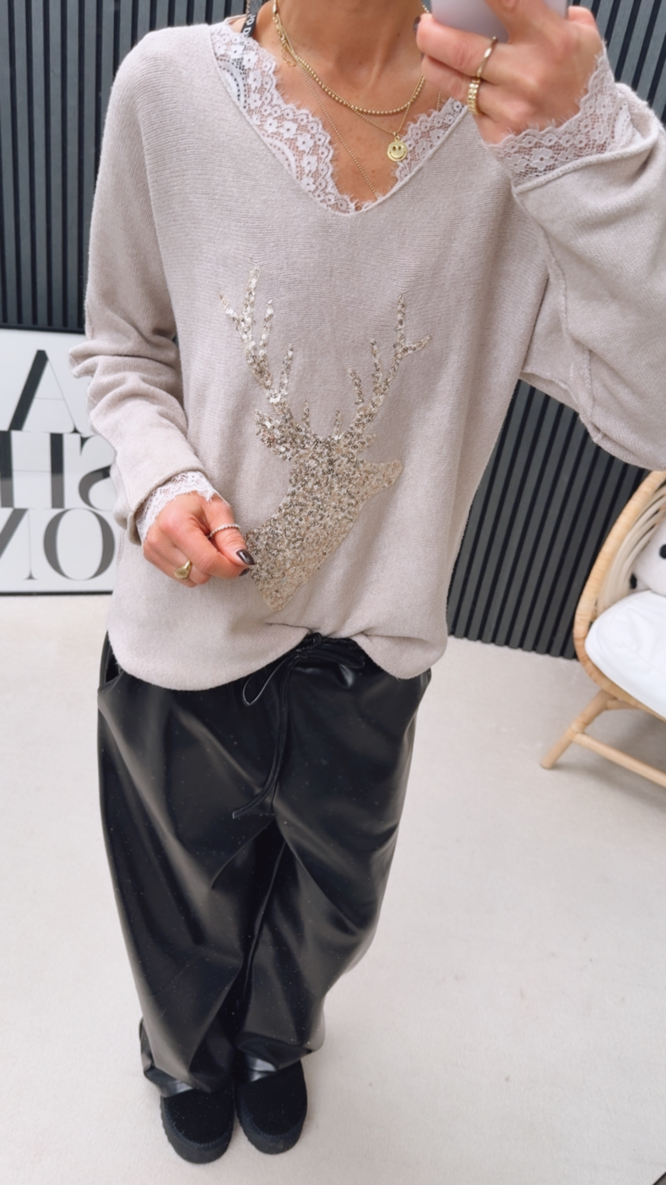 Feinstrick Pulli „Glitzi Hirschleee“