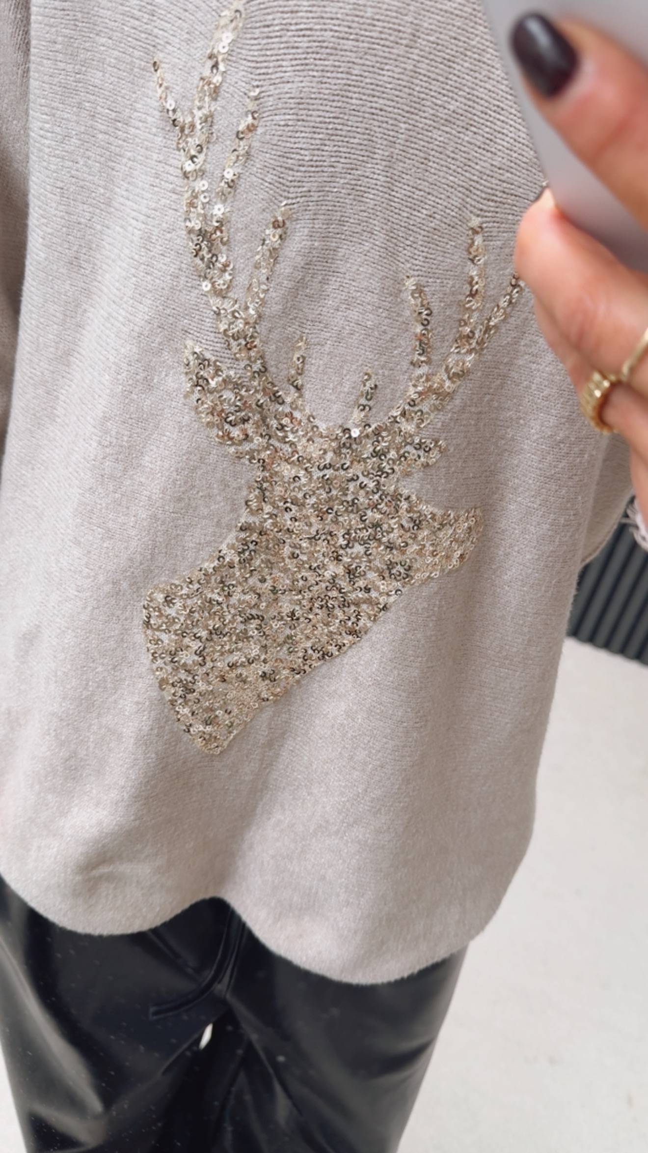 Produktinformationen "Feinstrick Pulli „Glitzi Hirschleee“"
