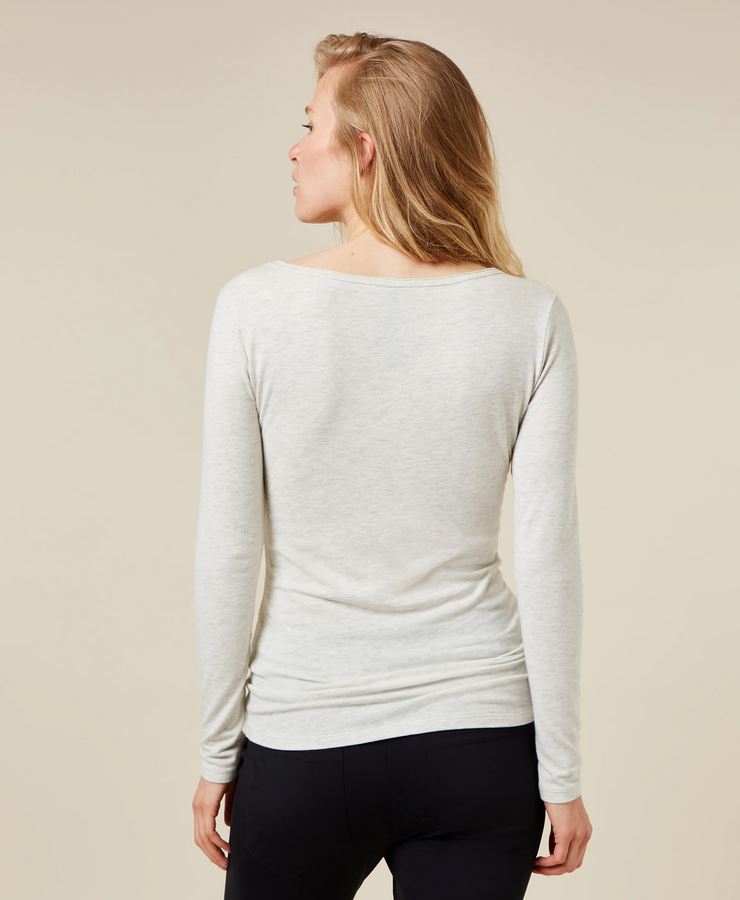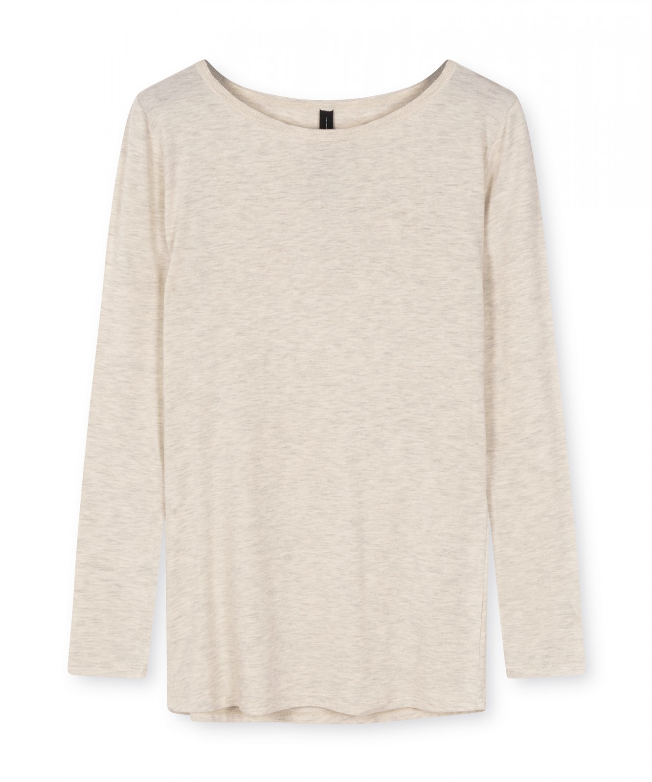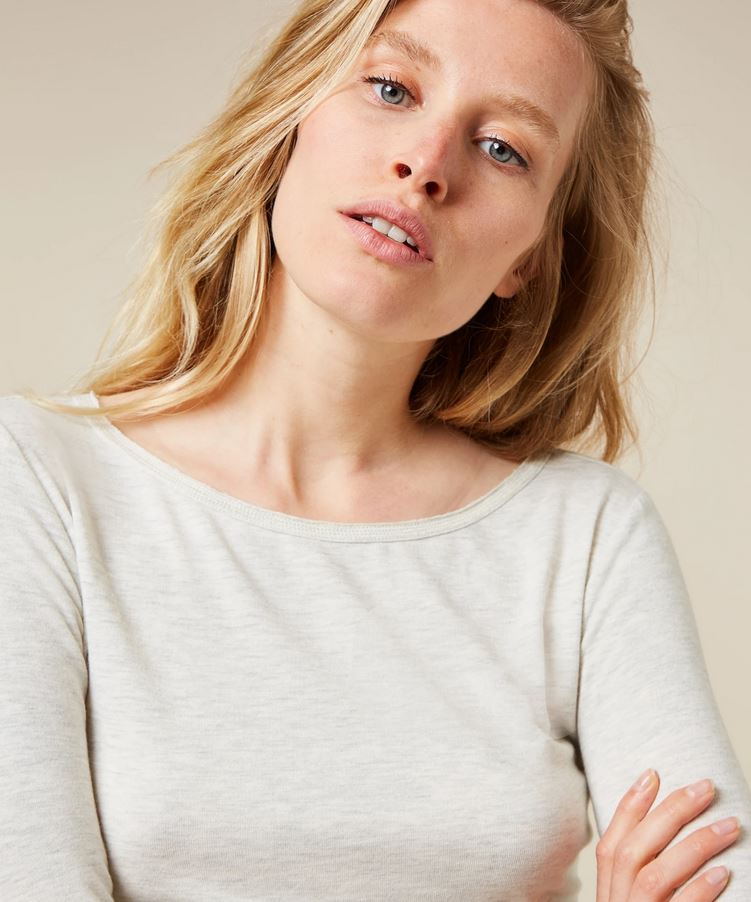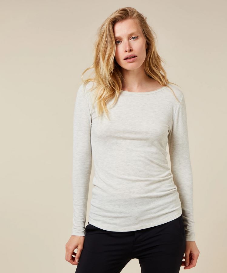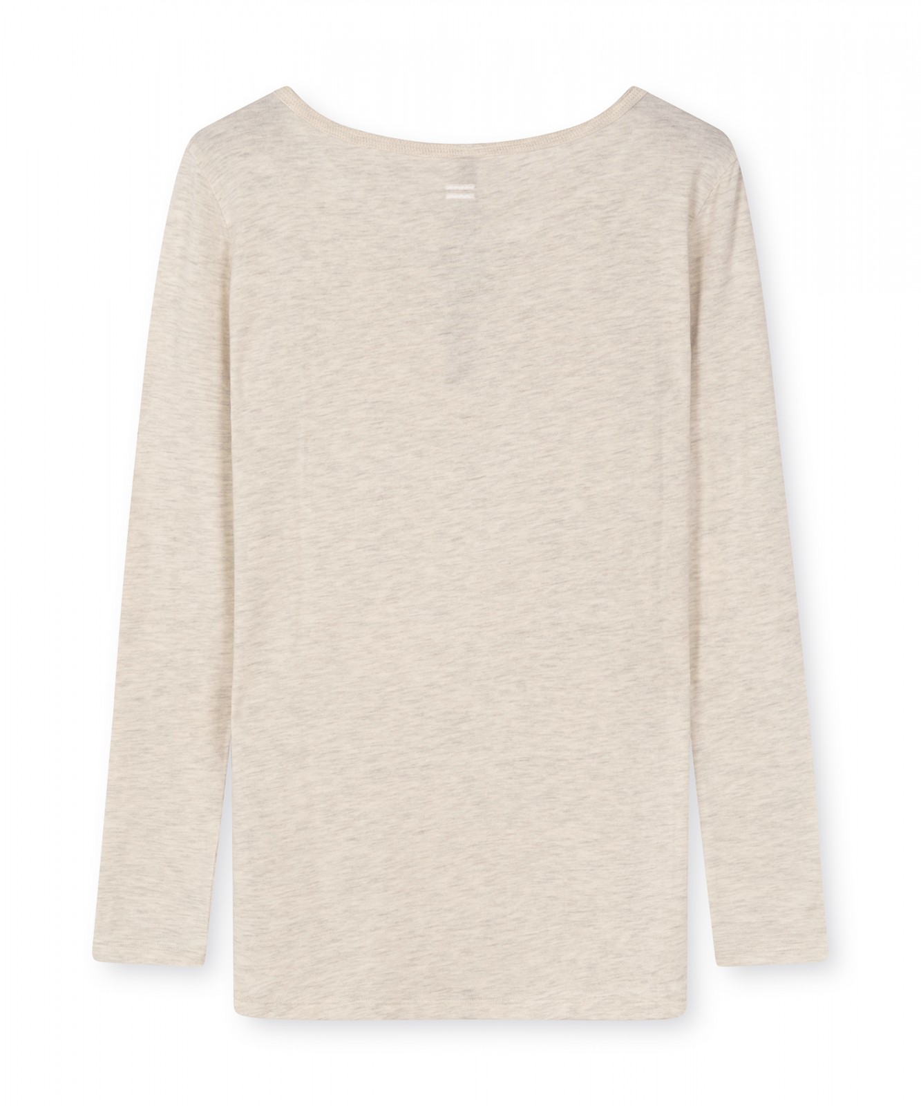 Slim Fit Top mit U-Boot-Ausschnitt und langen Ärmeln, aus superweichem Modaljersey in der Farbe Soft White Melee. Mit einem Vintage-Halsausschnitt, einem runden Saum und einer rückseitig, direkt unter der Halslinie applizierten écrufarbenen Mini Stripes Logo-Stickerei. Timeless comfort at it's best. Slim Fit, Vintage U-Boot-Ausschnitt, super weicher Modaljersey.