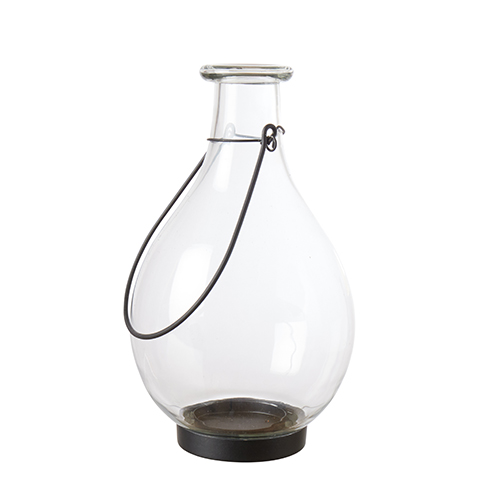 Mundgeblasene Laterne aus Klarglas mit schwarzem Metallboden der Marke Affari Schweden.