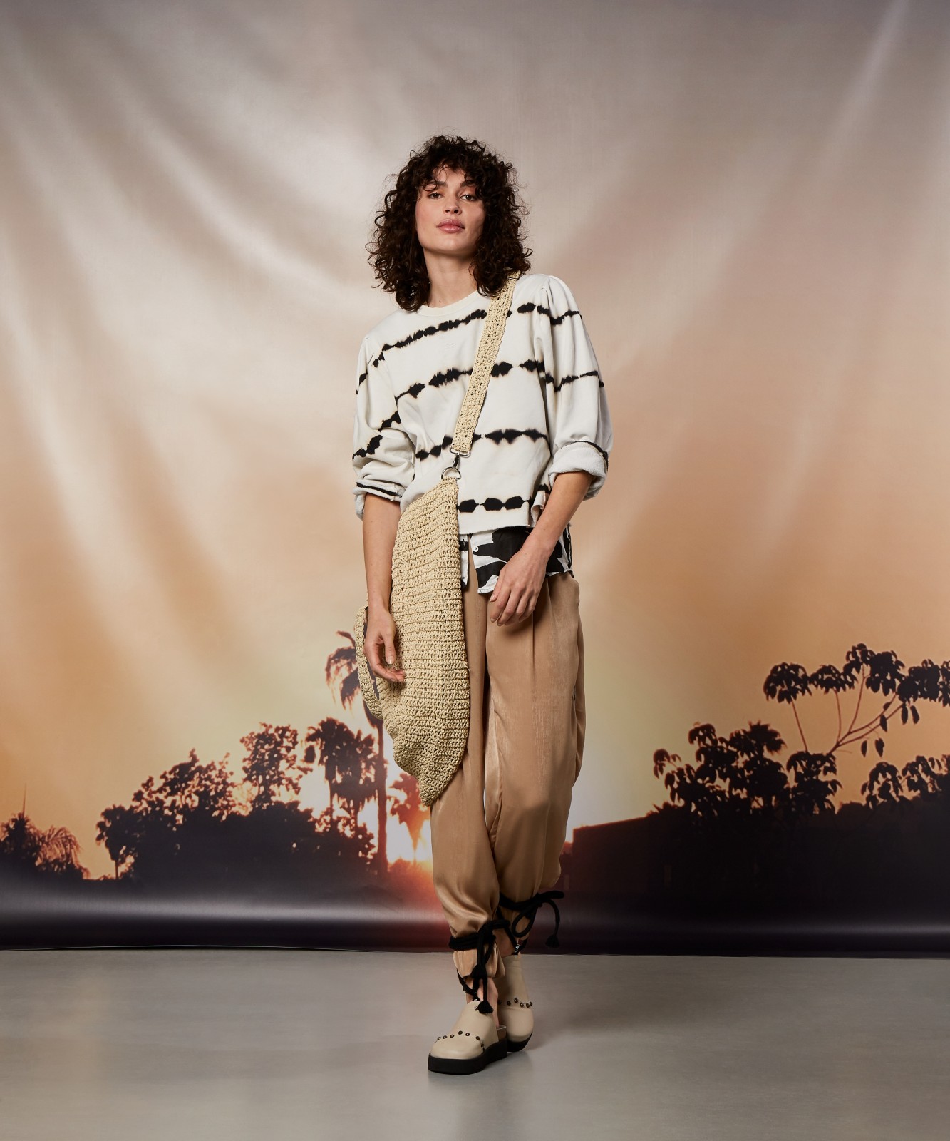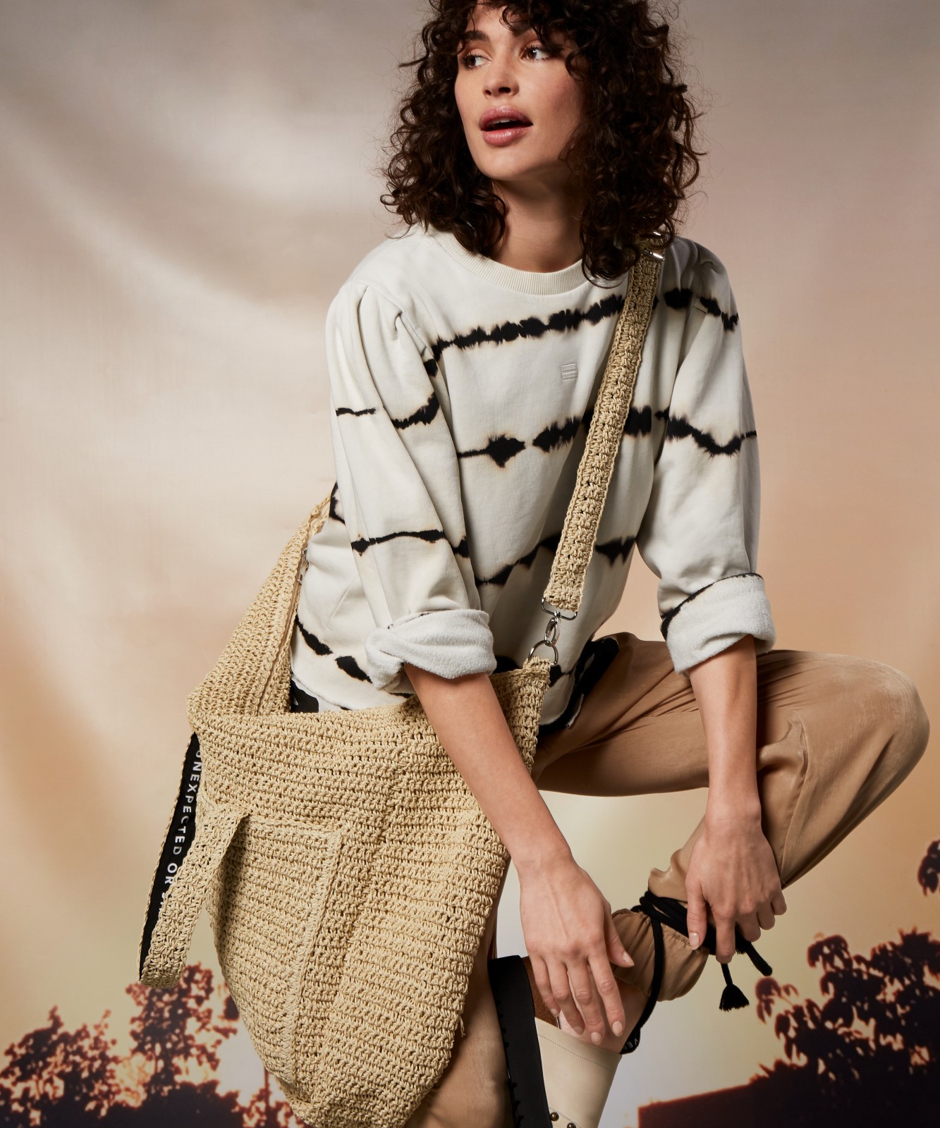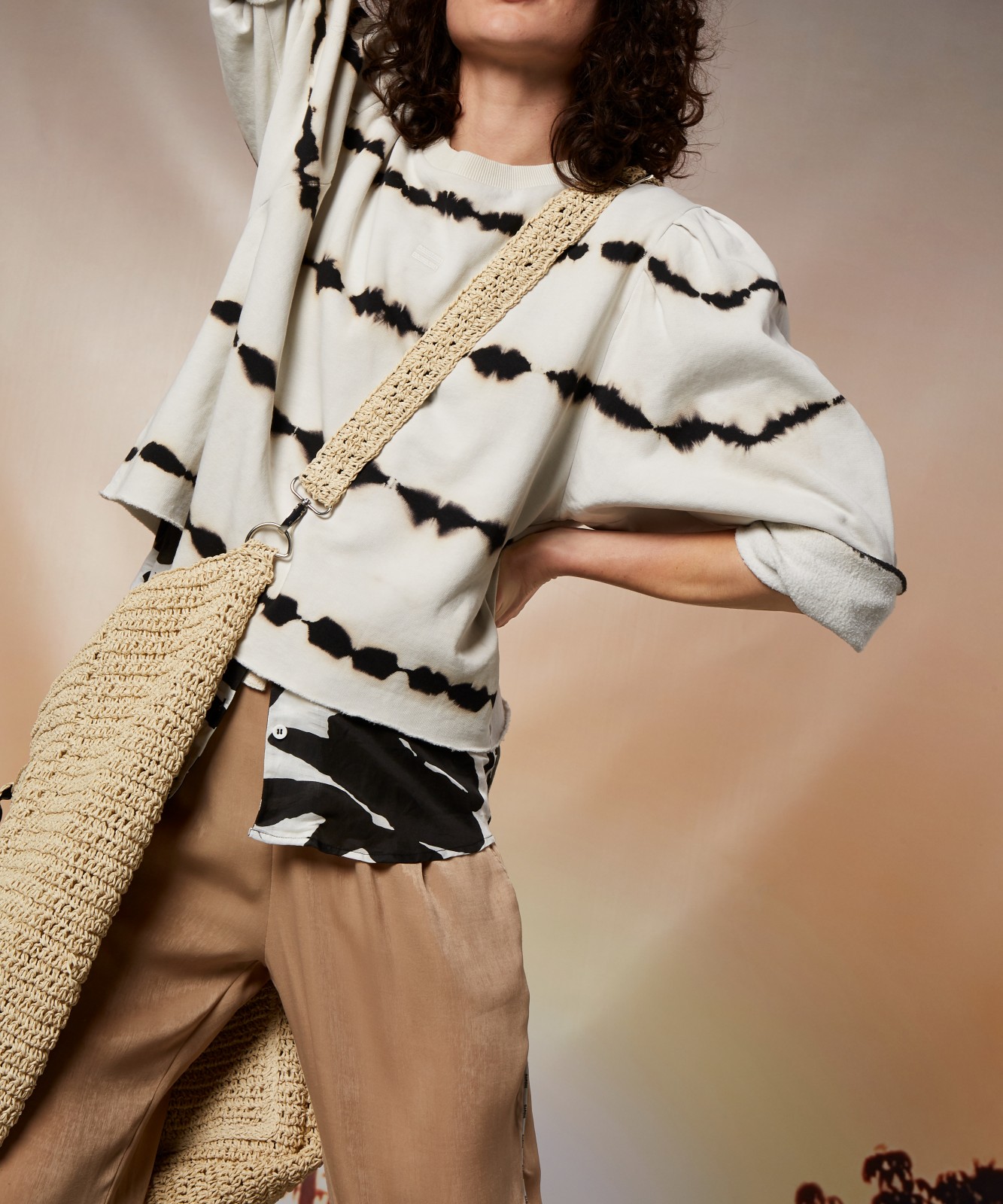 Cropped Regular Fit mit gerafften Ballonärmeln im Tie-Dye-Print.