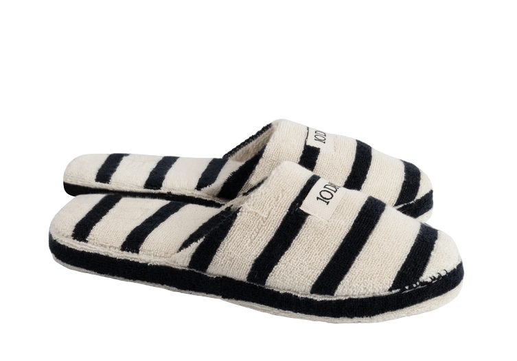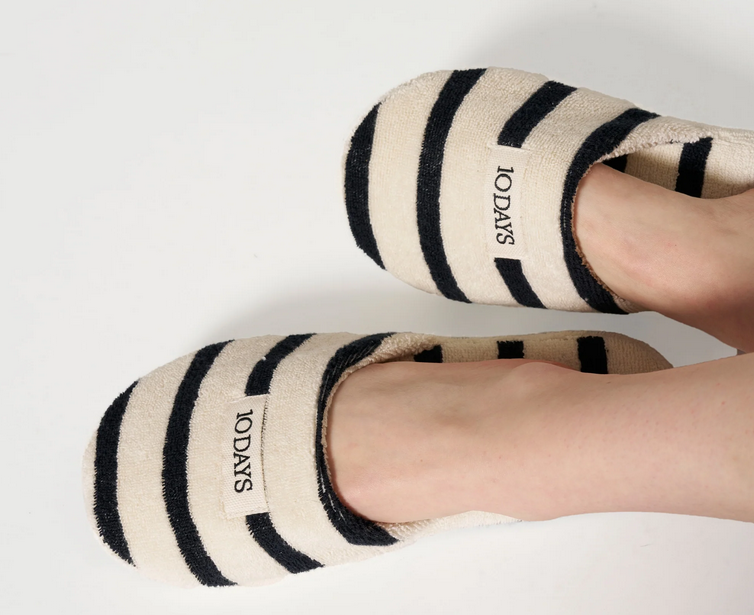 Hausschuhe aus Baumwollfrottee. Mit einer bequemen Sohle und einem 10DAYS-Label aus Canvas auf der Vorderseite.