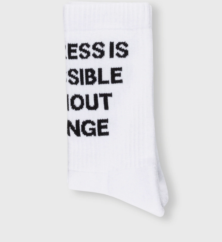 beiden Socken eingewebten Zitat versehen.